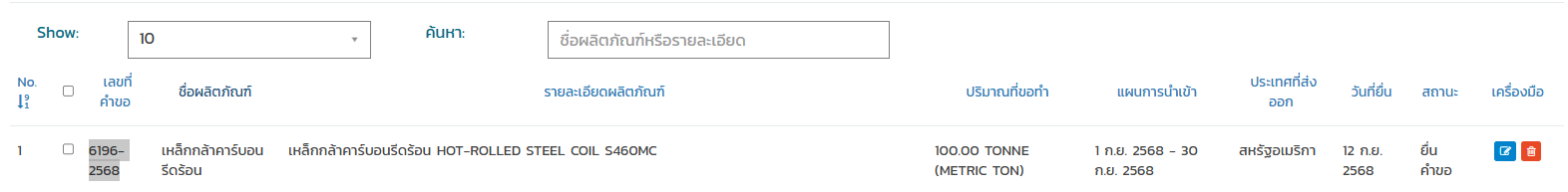 เลขที่คำขอ 6196-2568 ได้ยื่นคำขอไปตั้งแต่วันที่ 12 กันยายน 2025 ตอนนี้ในระบบยังคงเป็นสถานะยื่นคำขอ ไม่ทราบว่าเลขที่คำขอนี้อยู่ในขั้นตอนกระบวนการใดของเจ้าหน้า รบกวนช่วยตรวจสอบให้ด้วยค่ะ