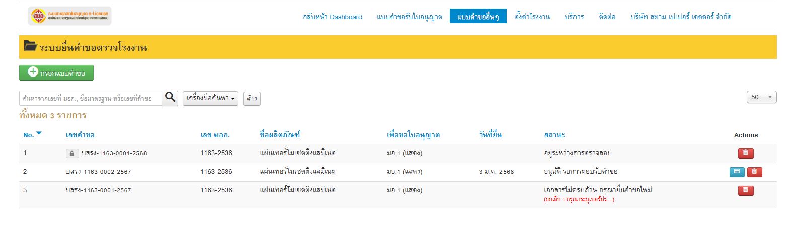 ต้องการสอบถามสถานะการเข้ามาตรวจโรงงานที่ยื่นไปค่ะ เลือกใช้หน่วยงานเอกชน เจ้าหน้าที่กดอนุมัติให้ได้เมื่อไหร่ค่ะ และอยากทราบขั้นตอนถัดไปว่าต้องทำอย่างไรต่อ ยื่นขอตรวจผลิตภัณฑ์ด้วยค่ะ มอก 1163-2536