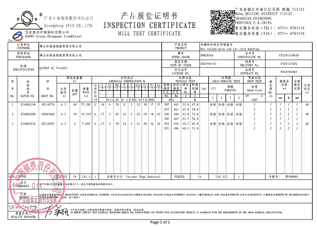 สอบถามการนำเข้าลวดเหล็กรีดร้อนนำมาขึ้นรูปเย็น เส้นผ่าศูนย์กลาง 6.5MM ที่มีวัตถุประสงค์จะนำเข้าดัด/จัดทำต่อ เป้น สกรู / มุดย้ำ