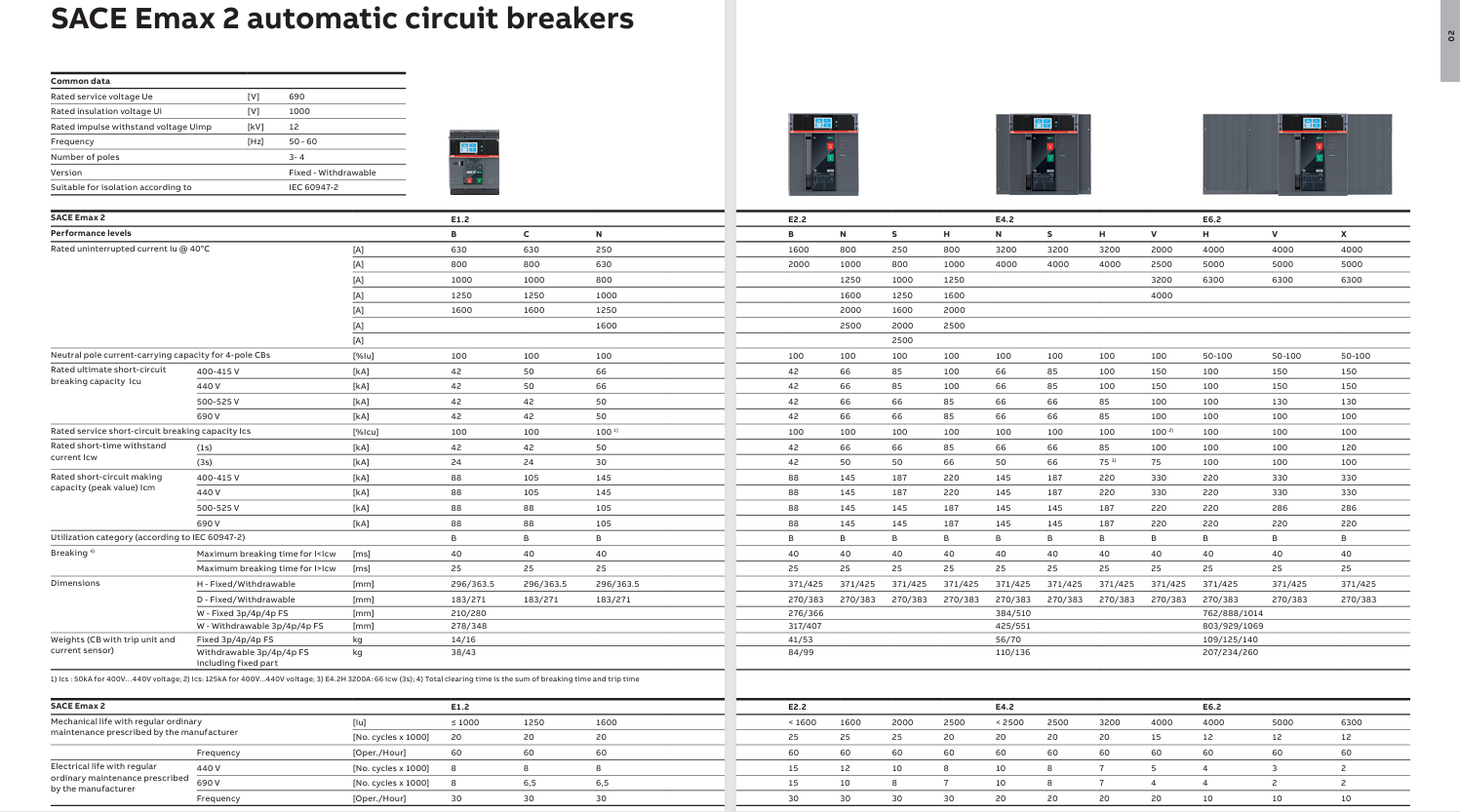 เป็นอุปกรณ์ที่ใช้ในการป้องกันและควบคุมวงจรไฟฟ้าขนาดใหญ่ เหมาะสมกับการใช้งานโรงงานอุตสาหกรรมขนาดใหญ่ จนไปถึงอาคารสำนักงาน ที่พักอาศัย มีฟังก์ชั่นในการป้องกันระบบไฟฟ้าที่ครอบคลุมหลากหลาย สามารถรองรับการสื่อสารต่าง ๆ ทุกรูปแบบได้แต่ Modbus RTU, Modbus TCP, Profibus, Profinet, Devicent, Ethemet/IP โดยสามารถติดตั้ง Module พร้อมกันได้ 2 Protocal ในรุ่น E1.2 และสามารถติดตั้งพร้อมกันได้ 3 Protocal ในรุ่น E2.2 – E6.2 ทั้งนี้ Emax2 ยังประกอบด้วย 4 เฟรม ที่มีขนาดการใช้งานสูงสุดได้ถึง 6300A มีทั้ง 3 โพล และ 4 โพล มีการติดตั้งแบบ Fixed Version และแบบ Withdrawable Version