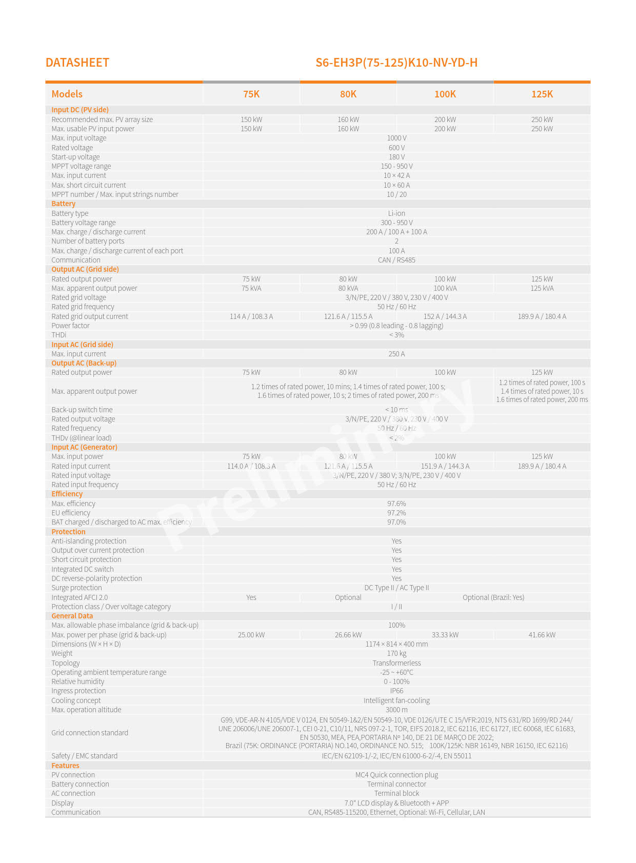 • Rated grid voltage : 3/N/PE, 220 V / 380 V, 230 V / 400 V