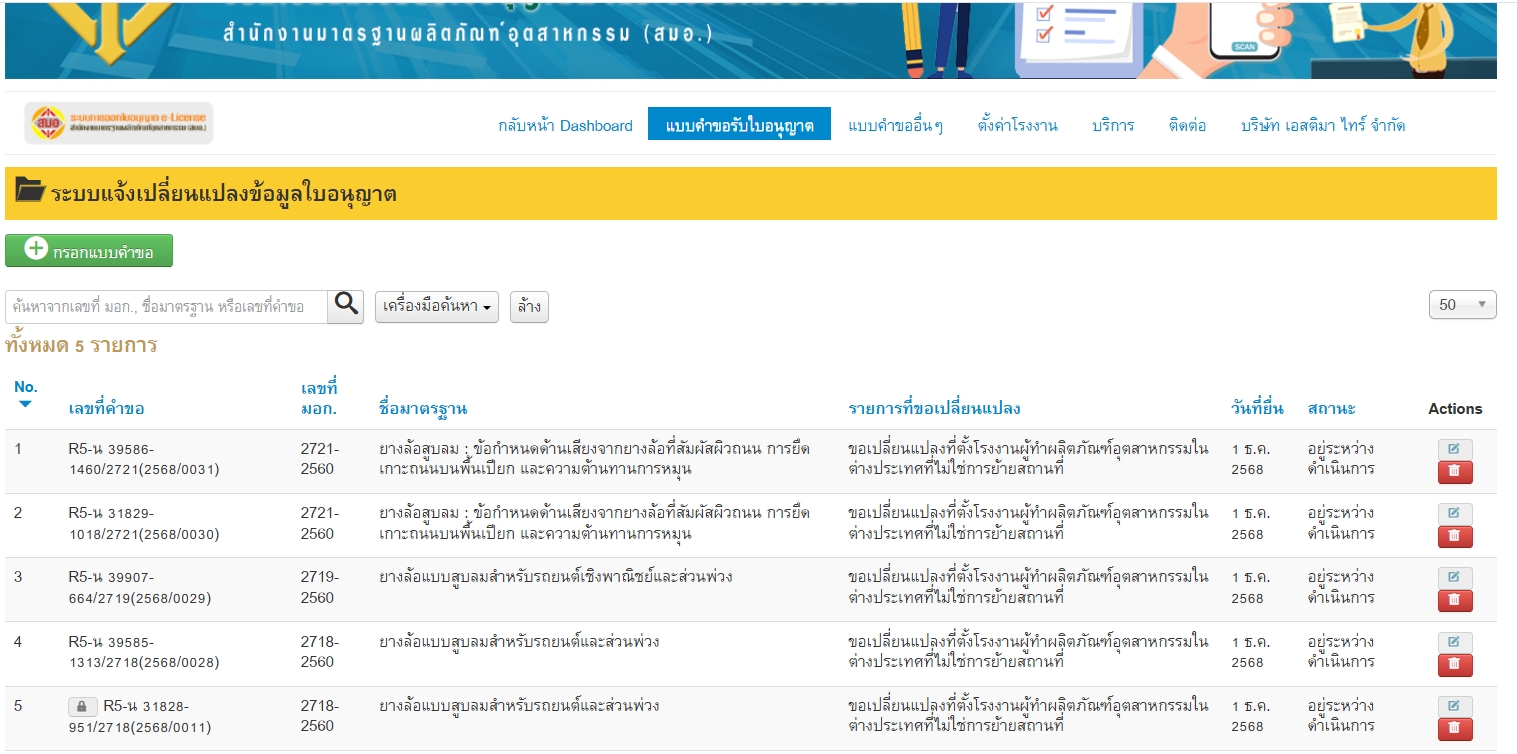 เนื่องจากทางบริษัท ได้ยื่นคำขอเปลี่ยนแปลงรายละเอียดที่อยู่โรงงานผลิตในต่างประเทศไป ตั้งแต่ วันที่ 1 ธันวาคม 2568 ปัจจุบันยังไม่มีสถานะอัพเดท ไม่ทราบว่าต้องแก้ไขอะไรหรือไม่